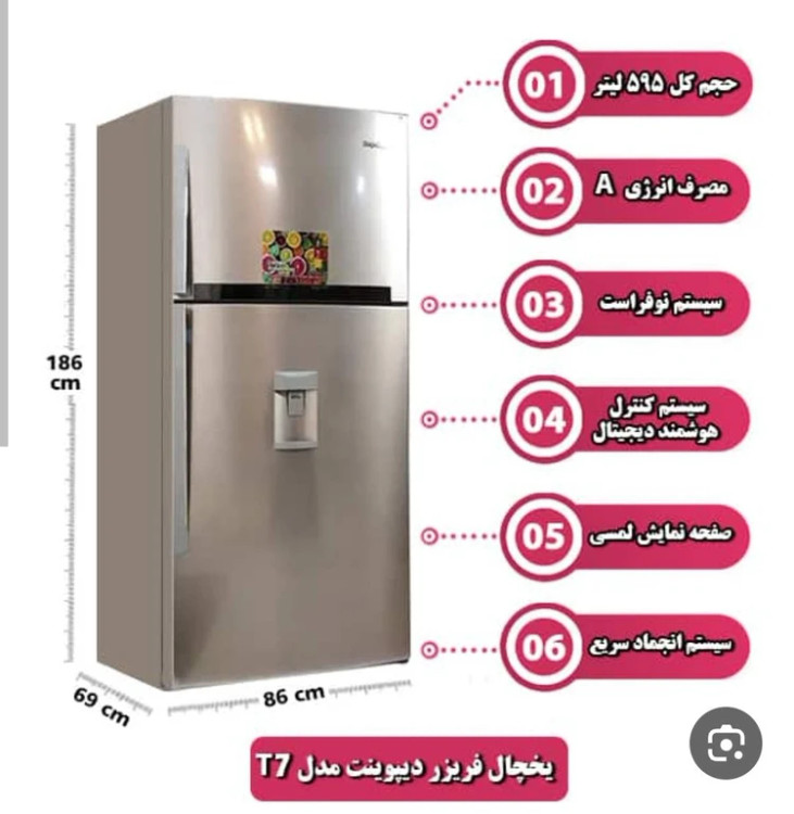 یخچال فریزر فریزر بالا دیپوینت T7